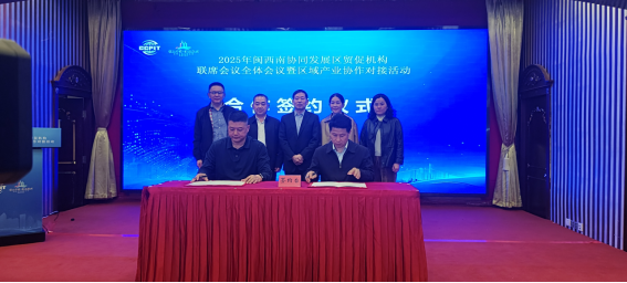 会议以“深化区域协作、赋能产业发展”为核心,设置工作交流、事项研讨、产业推介、合作签约四大议程。会议期间,闽西南协同发展区贸促机构联席会议与江西省吉安市贸促会签订战略合作框架协议,建立友好合作关系,有效推动了经贸信息互通、项目精准对接、企业服务联动等领域的深度协作。会议还审议通过了增补9家县级贸促会为联席会议成员单位的方案,使闽西南贸促协作网络更趋完善。