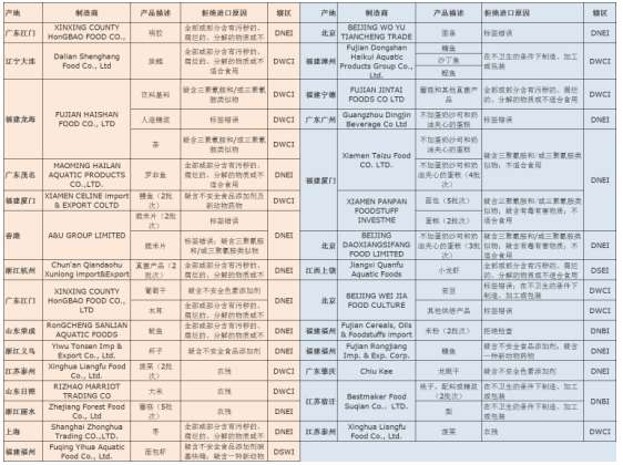 贸促〔2019〕0707号预警信息:8月份美国拒绝进口中国食品情况汇总
