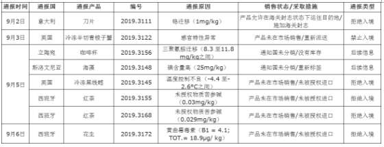 贸促〔2019〕0708号预警信息:欧盟食品和饲料类快速预警系统RASFF通报第36周