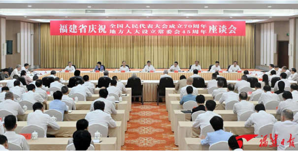 9月26日,福建省庆祝全国人民代表大会成立70周年暨地方人大设立常委会45周年座谈会在福州召开。省委书记、省人大常委会主任周祖翼主持会议并讲话,强调要深入学习贯彻习近平总书记关于坚持和完善人民代表大会制度的重要思想,认真学习贯彻习近平总书记在庆祝全国人民代表大会成立70周年大会上的重要讲话精神,坚持党的领导、人民当家作主、依法治国有机统一,丰富和拓展全过程人民民主人大实践,坚持好、完善好、运行好人民代表大会制度,在深学细悟笃行中把牢人大工作正确方向,在总结成就经验中更加坚定制度自信,在新时代新征程中彰显人大新担当新作为,为推进中国式现代化福建实践提供有力保障。