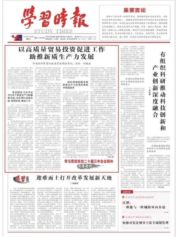 任鸿斌在《学习时报》发表署名文章《以高质量贸易投资促进工作助推新质生产力发展》