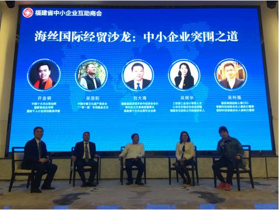 在海丝国际经贸沙龙上,中国十大杰出策划师、国家级创业导师许金钢、中国华夏文化遗产基金会“一带一路”专项基金主任吴国阳、福建省经济技术协作促进会会长刘大海、小米生态链谷仓创业学院创始合伙人吴棋华、星狐集团创始人吴利强等经济界、学界、专家分别就中小企业突围之道分享了他们的经验做法。