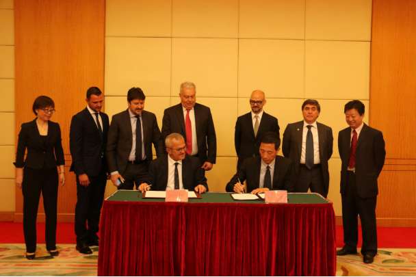 福建省贸促会会长陈震同意大利佩斯卡拉工商会主席尼古拉签订合作备忘录