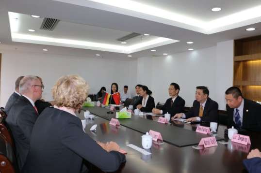 4月26日下午,省贸促会会长张秋以及省贸促会副会长陈力达、傅健在省贸促会会见了德国艾德卡集团北区好博平台总裁科赫和德国劳恩堡市市长安德里斯·提艾德一行。