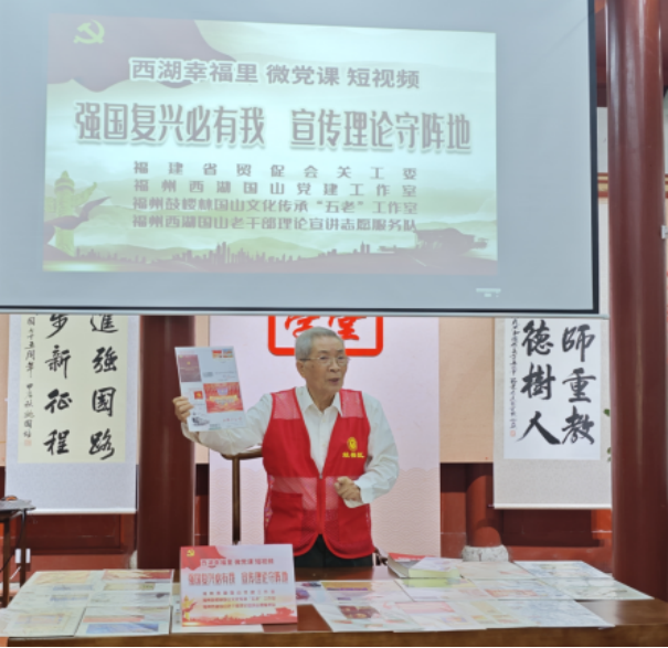 10月17日下午,省贸促会关工委携手西湖社区、福州西湖公园管理处、福州西湖国山党建工作室、福州西湖国山老干部理论宣讲志愿服务队,在西湖书院联合举办了“强国复兴必有我,宣传理论守阵地”为主题的西湖幸福里微党课短视频启动仪式暨“邮”说中国式现代化发展模式十大优势主题党课活动。