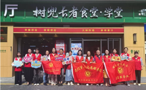 在树兜长者食堂·学堂服务台,省贸促会志愿者们贴心地准备了矿泉水、急救用品等避暑用品,帮助考生营造凉爽的候考环境。为给考生送上美好祝愿,现场还设置了“金榜题名”、“前程似锦”等祝福牌,热情邀请考生及家长合影留念,为紧张的考场氛围增添了一抹轻松与暖意。