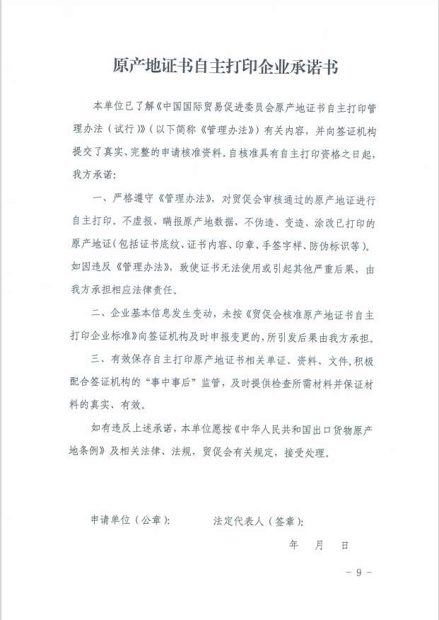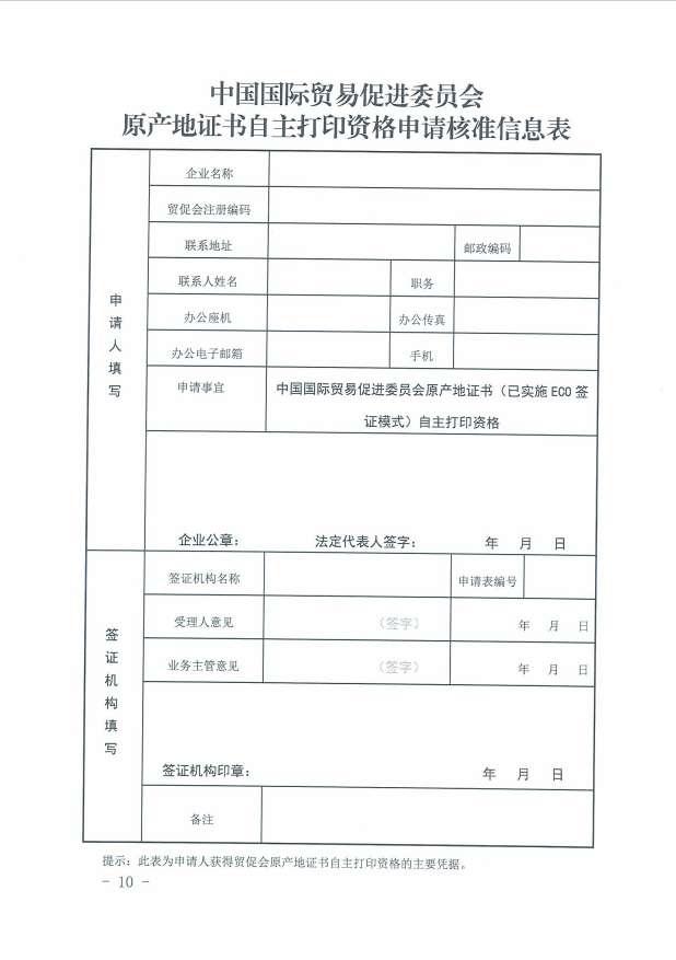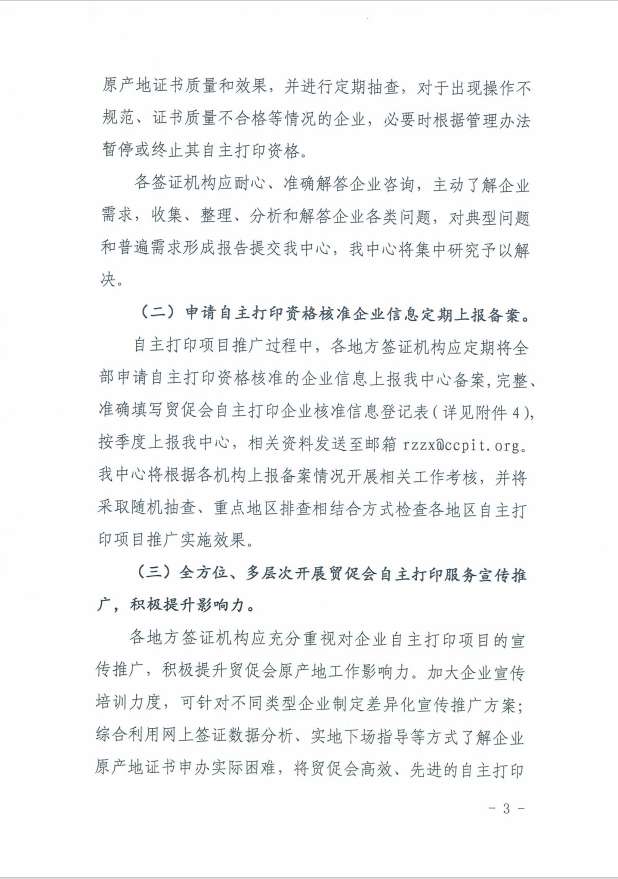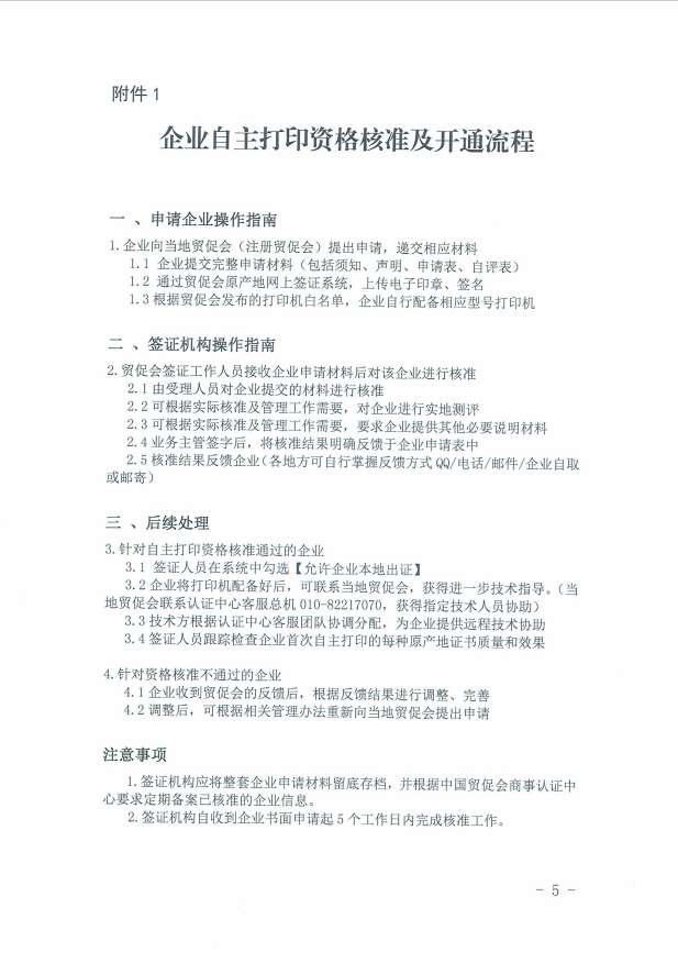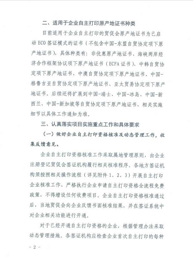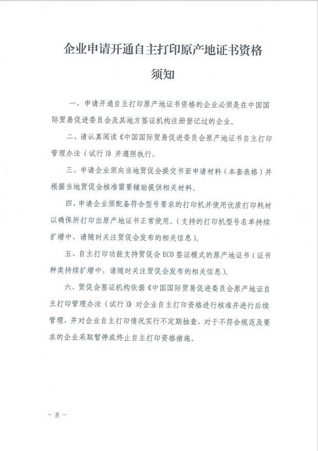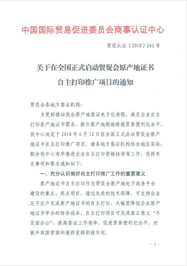 关于在全国正式启动贸促会原产地证书自主打印推广项目的通知