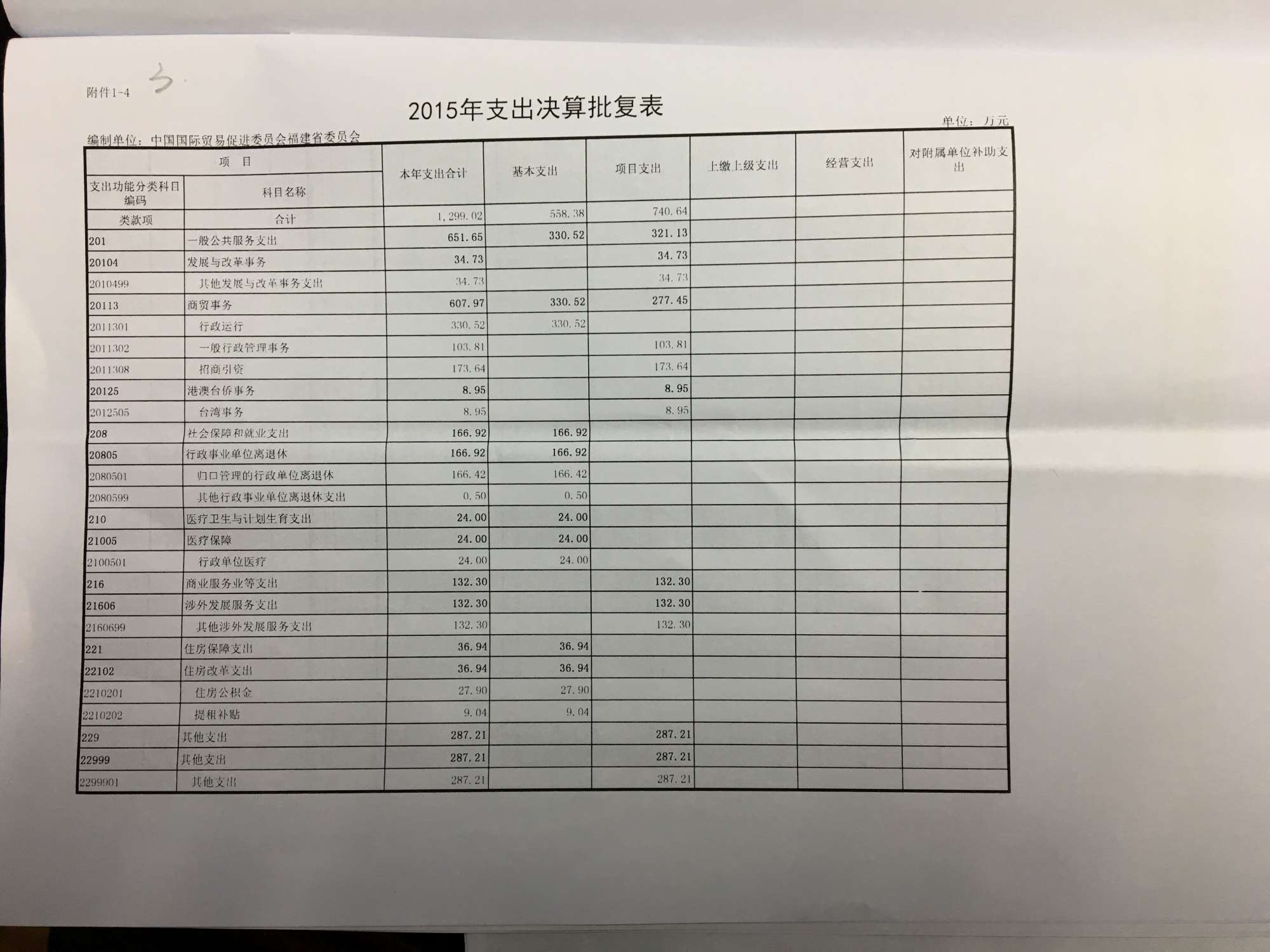 按照《福建省财政厅关于批复贸促会2015年度部门决算的通知》(闽财决〔2015〕139号)及《福建省财政厅关于深入推进预决算公开工作的通知》的要求,现将我单位2015年度部门决算说明如下: