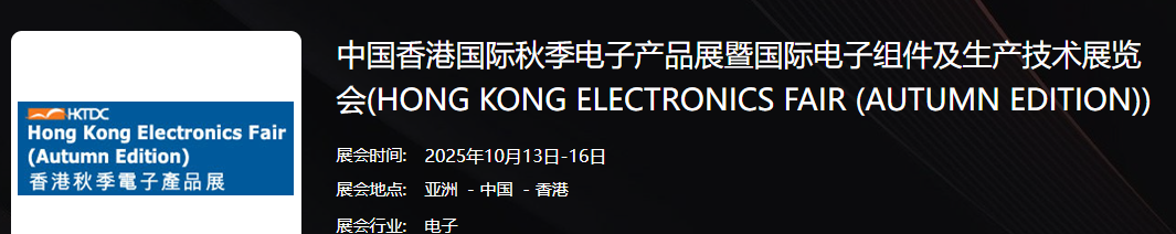 香港秋季电子产品展暨国际电子组件及生产技术展HK Electronics Fair(Autumn Edition)规模不断壮大,2020年的展会汇聚超过3,700家来自23个国家和地区的企业参展,刷新历届纪录。与香港秋季电子产品展同期举行的国际电子组件及生产技术展,是亚洲首屈一指的电子元件、组件、生产技术、太阳能光伏和显示技术展览会,由香港贸发局与慕尼黑国际博览亚洲有限好博平台合办。两大展览相辅相成,为买家缔造更多机会采购相关产品及物色合作伙伴,发掘商机。